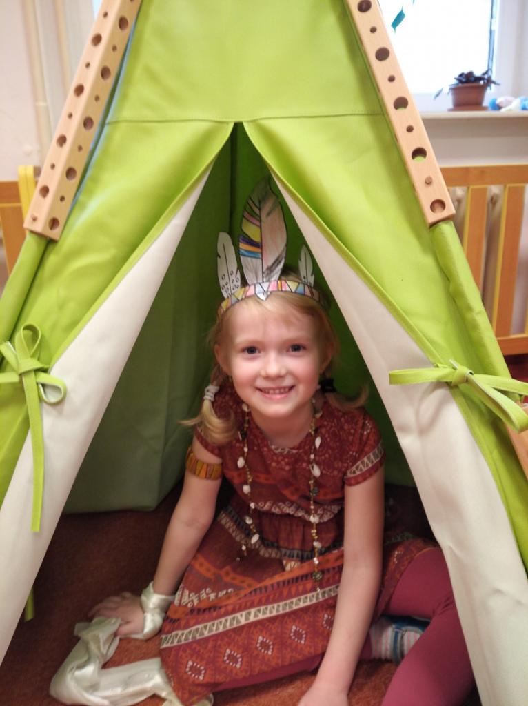 Ve školce jsme si v druhém březnovém týdnu vyprávěli o světadílech a různých národech, které na Zemi žijí. Ve středu jsme měli indiánský den: děti přišly v indiánském oblečení, zahrály si indiánské hry a vyzkoušely si posezení v týpí.