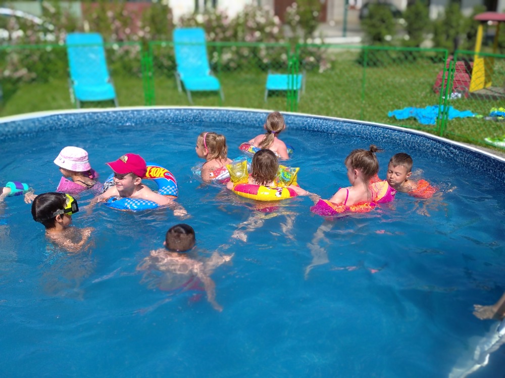 V tomto týdnu nám přeje počasí a tak můžeme ve školce a v družině využívat bazén. Během přestávek bývají na zahradě i školáci.