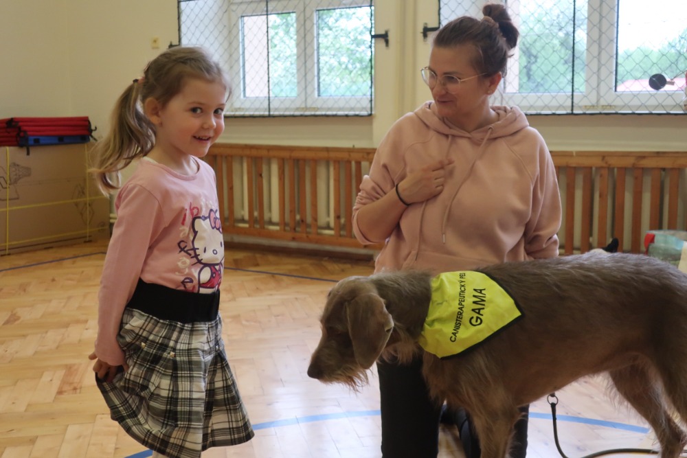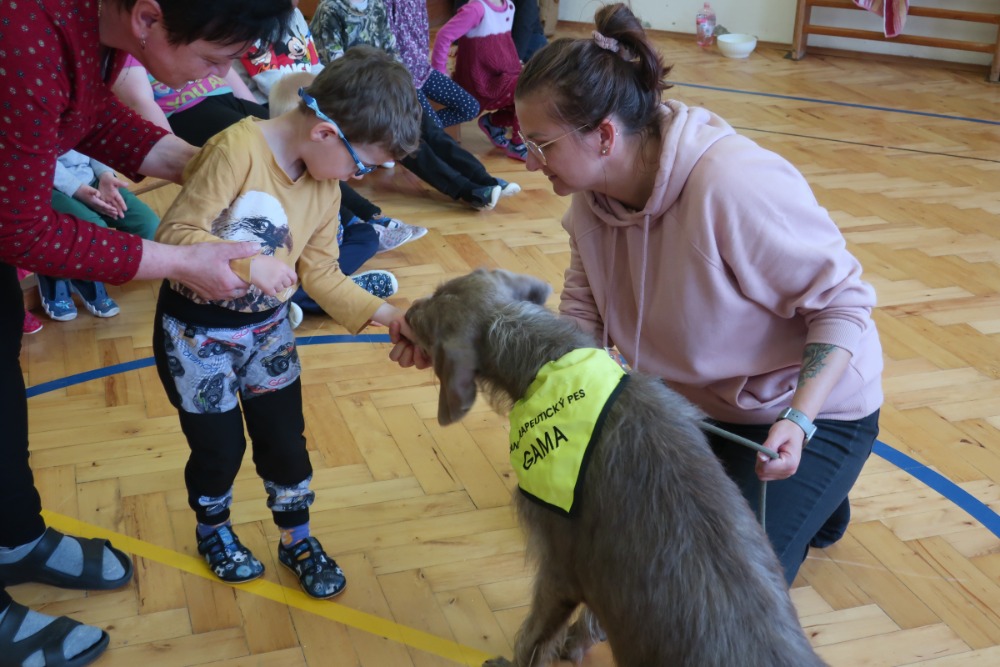 Zvířata jsou v naší školce velmi oblíbená, děti potěšila návštěva canisterapeutky s jejím psím kamarádem. Děti se dozvěděly, jak takový vycvičený pes umí pomáhat.