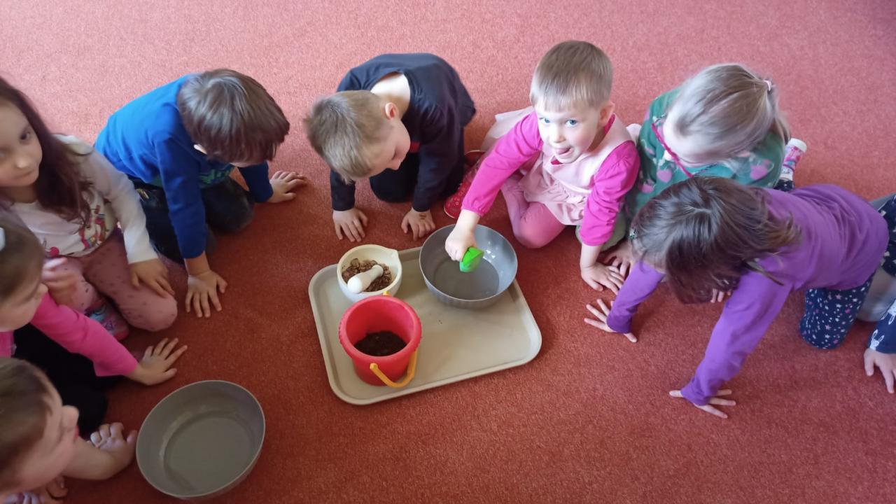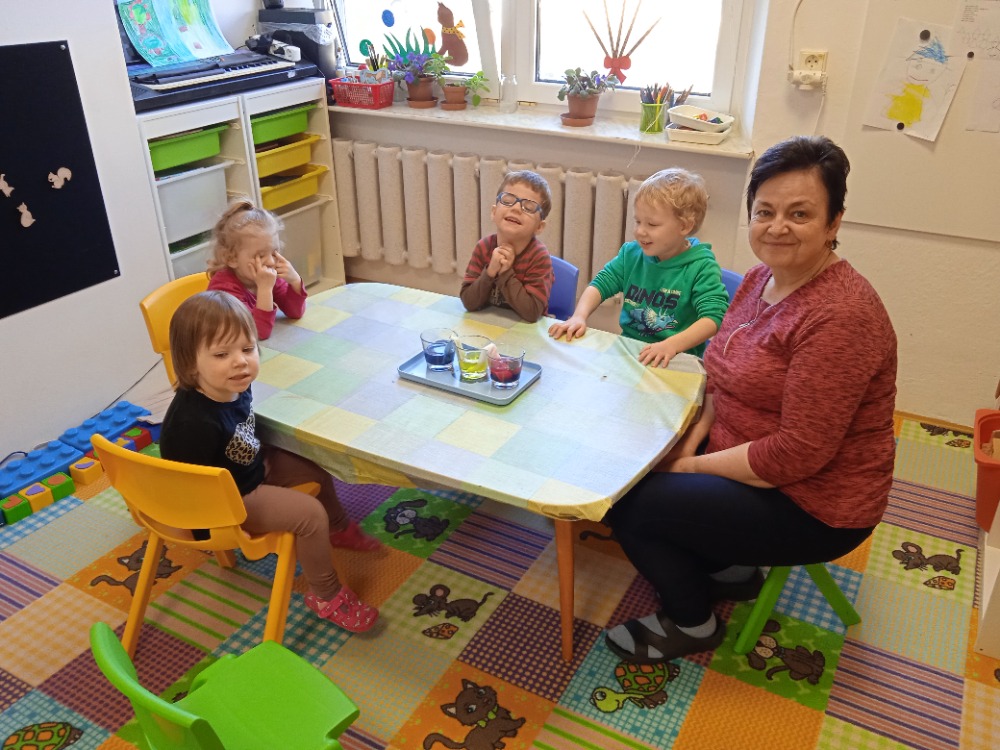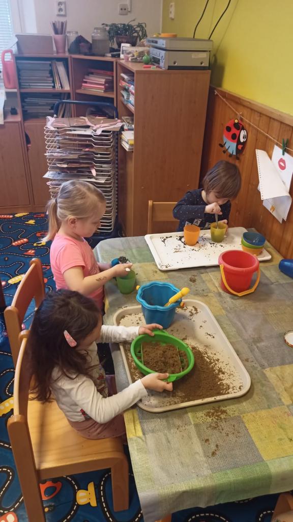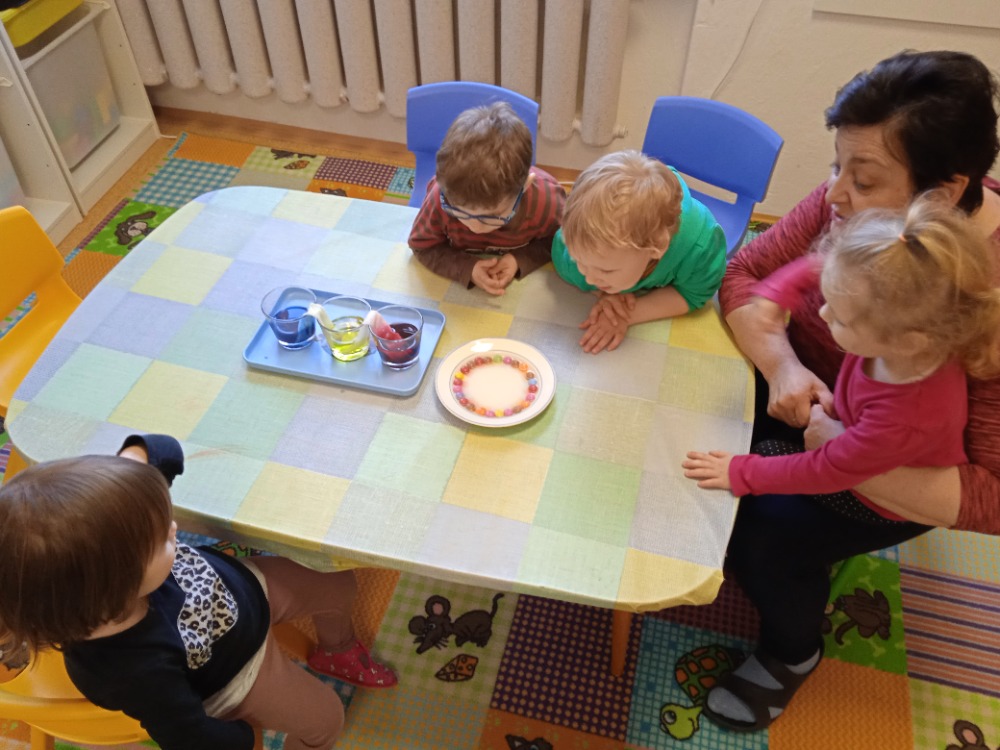 V dubnu jsme se věnovali ve třídě Sluníček pozorování živočichů, kteří žijí v půdě. Mladší děti (ze třídy Motýlků) zase kouzlili s barvami.