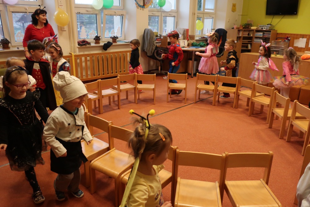 Na závěr barevného týdne v MŠ jsme uspořádali karneval, během kterého jsme si užili soutěže, tancování a přehlídku masek.