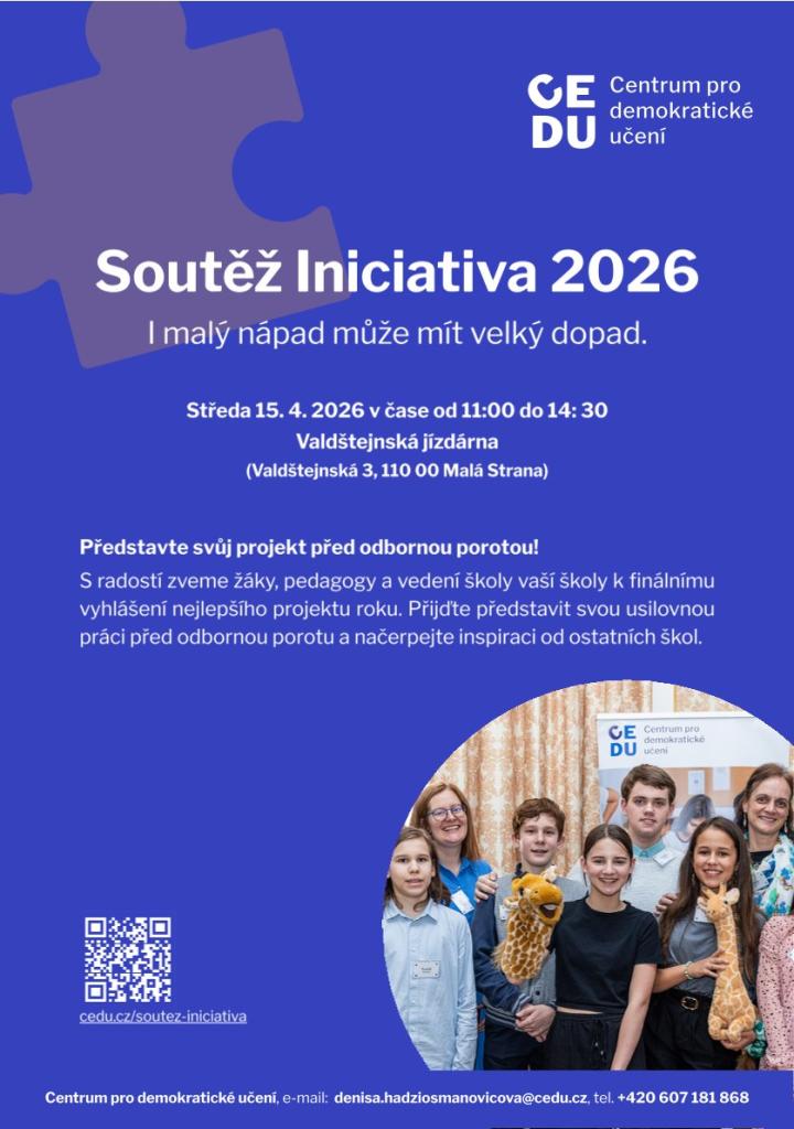Ve středu 15.4.2026 se naši žáci (loňský 5. ročník) zúčastní v Praze finále 15. ročníku Soutěže Iniciativa o tvorbě filmového dokumentu "Sedm životů - jeden domov" o choryňských seniorech. Aktuálně probíhá hlasování veřejnosti, které má vliv na celkové bodové hodnocení finálové desítky (viz odkaz)
