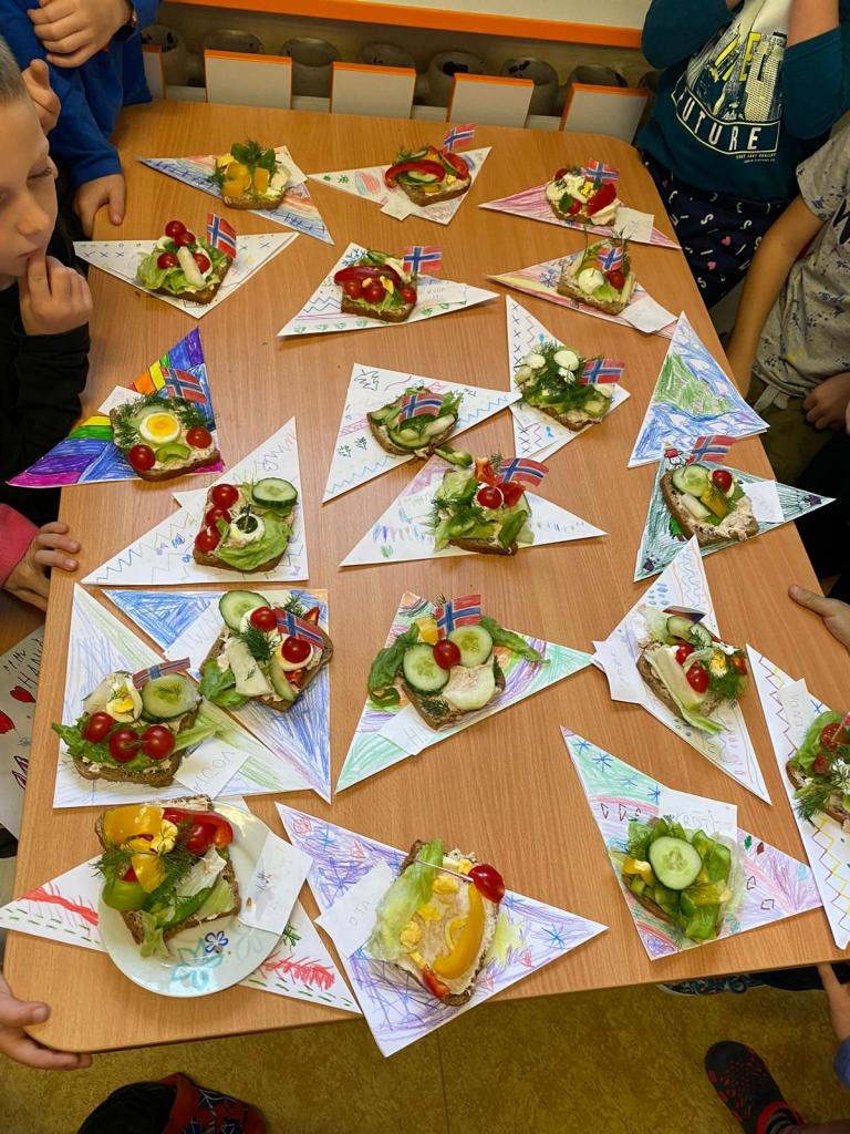 V družině jsme použili kuchařku "Vaření s příběhem" a uspořádali jsme "miss chlebíček" v norském stylu: lákavé chlebíčky s rybí pomazánkou, koprem a spoustou zeleniny nejen dobře vypadaly, ale taky chutnaly!
