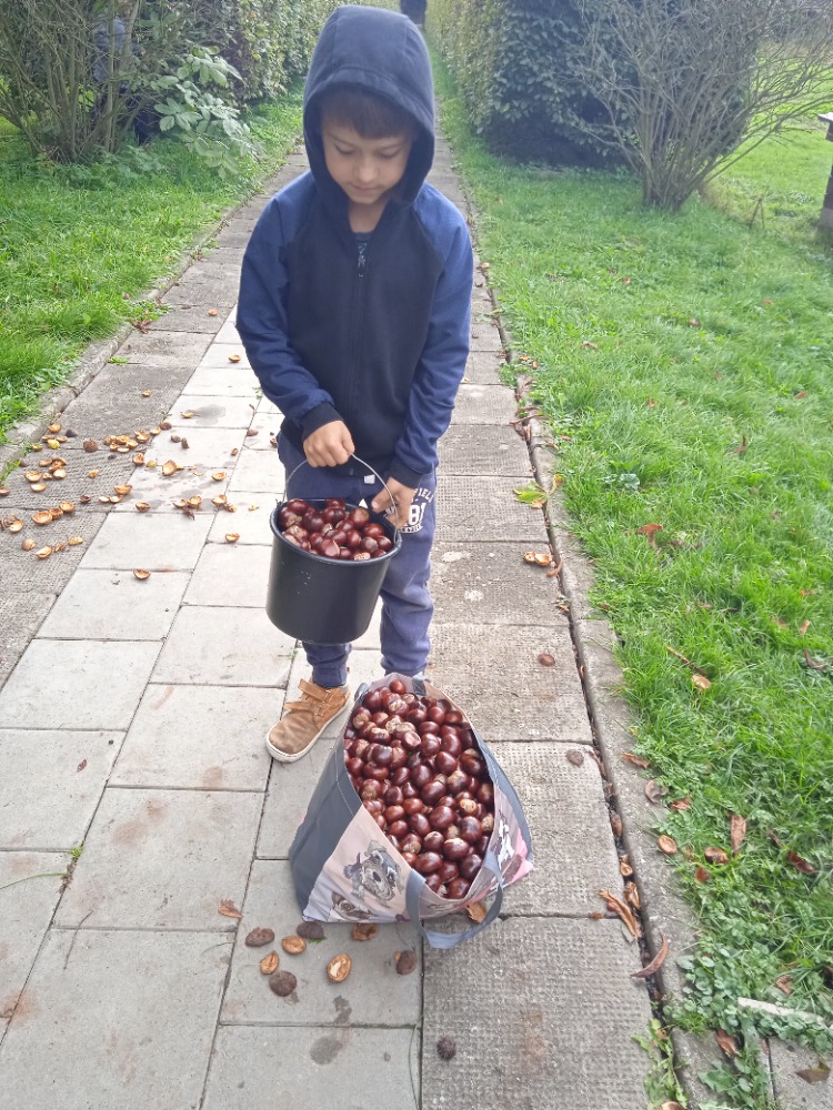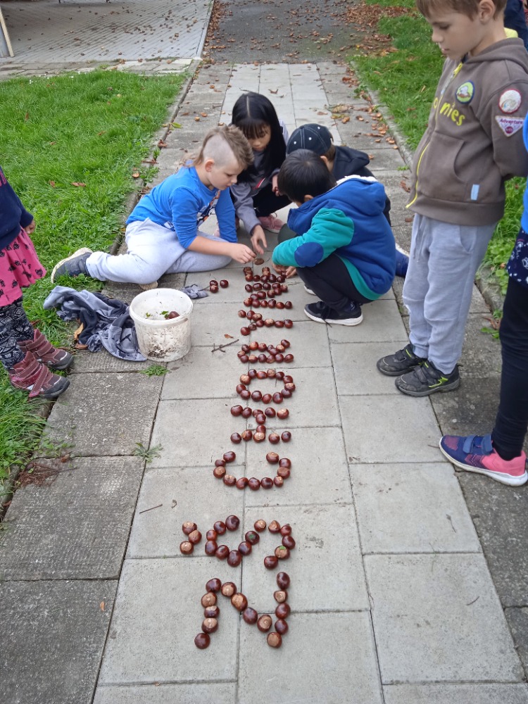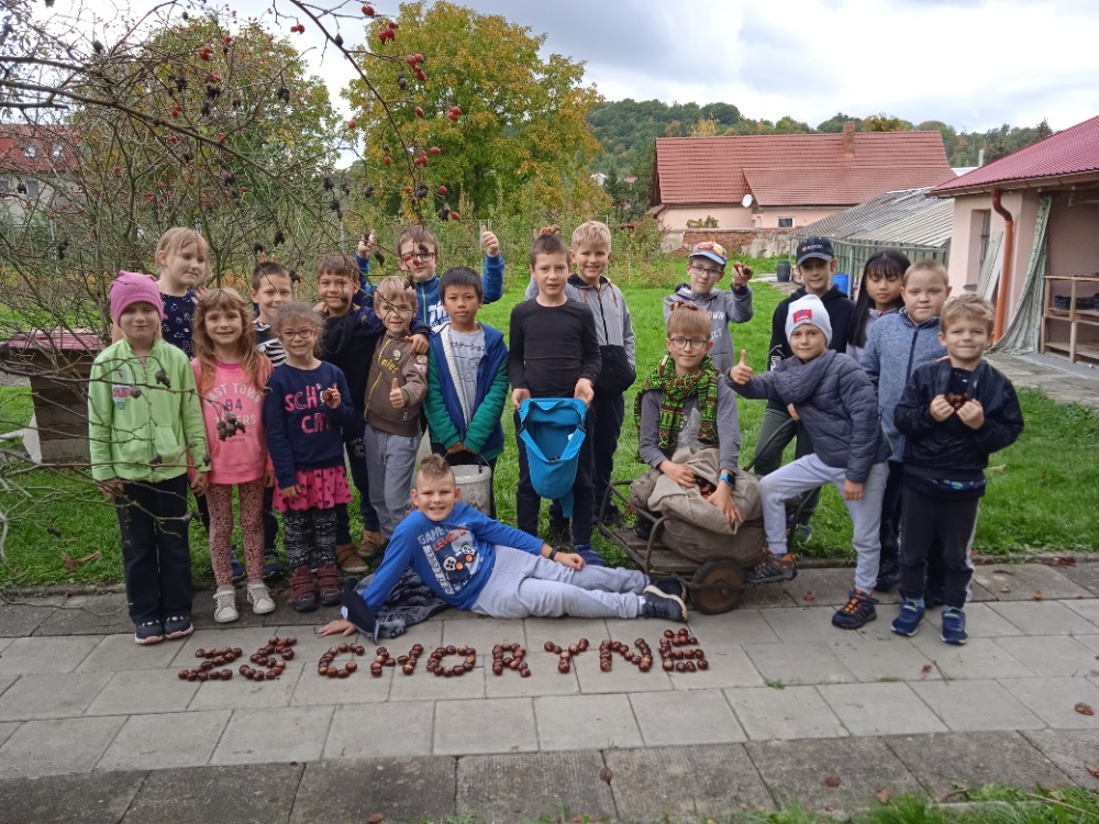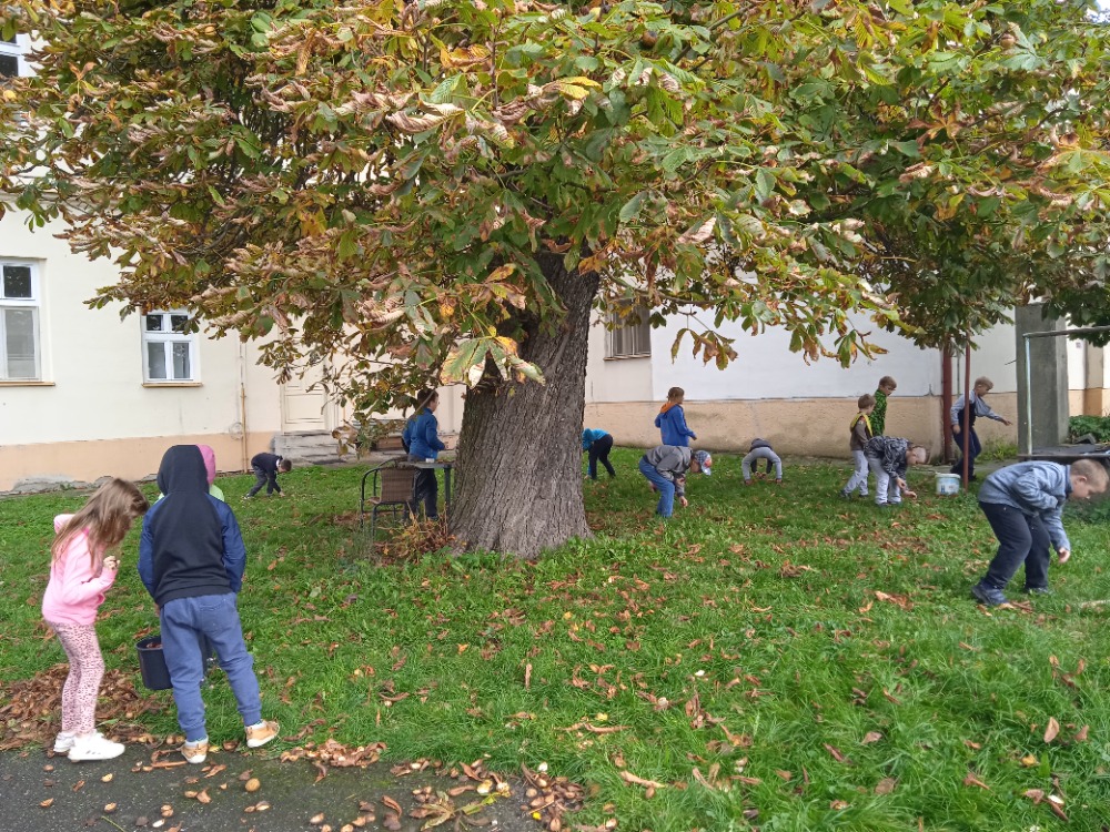 Pro myslivecké sdružení Branky a Poličná jsme sbírali s dětmi v ŠD kaštany. Poslouží při dokrmování zvěře v zimních měsících.
