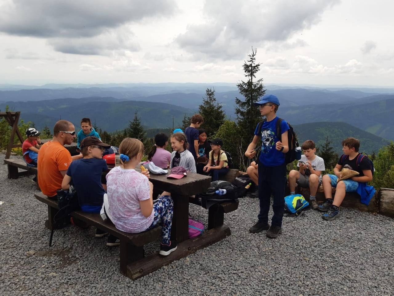 Druhý den na škole v přírodě jsme zahájili rozcvičkou a po snídani se vydali na výšlap na Lysou horu. Všichni to zvládli a kromě pár kapek deště nám přálo i počasí. Kdo chtěl, mohl večer vyzkoušet osvěžení v bazénu.