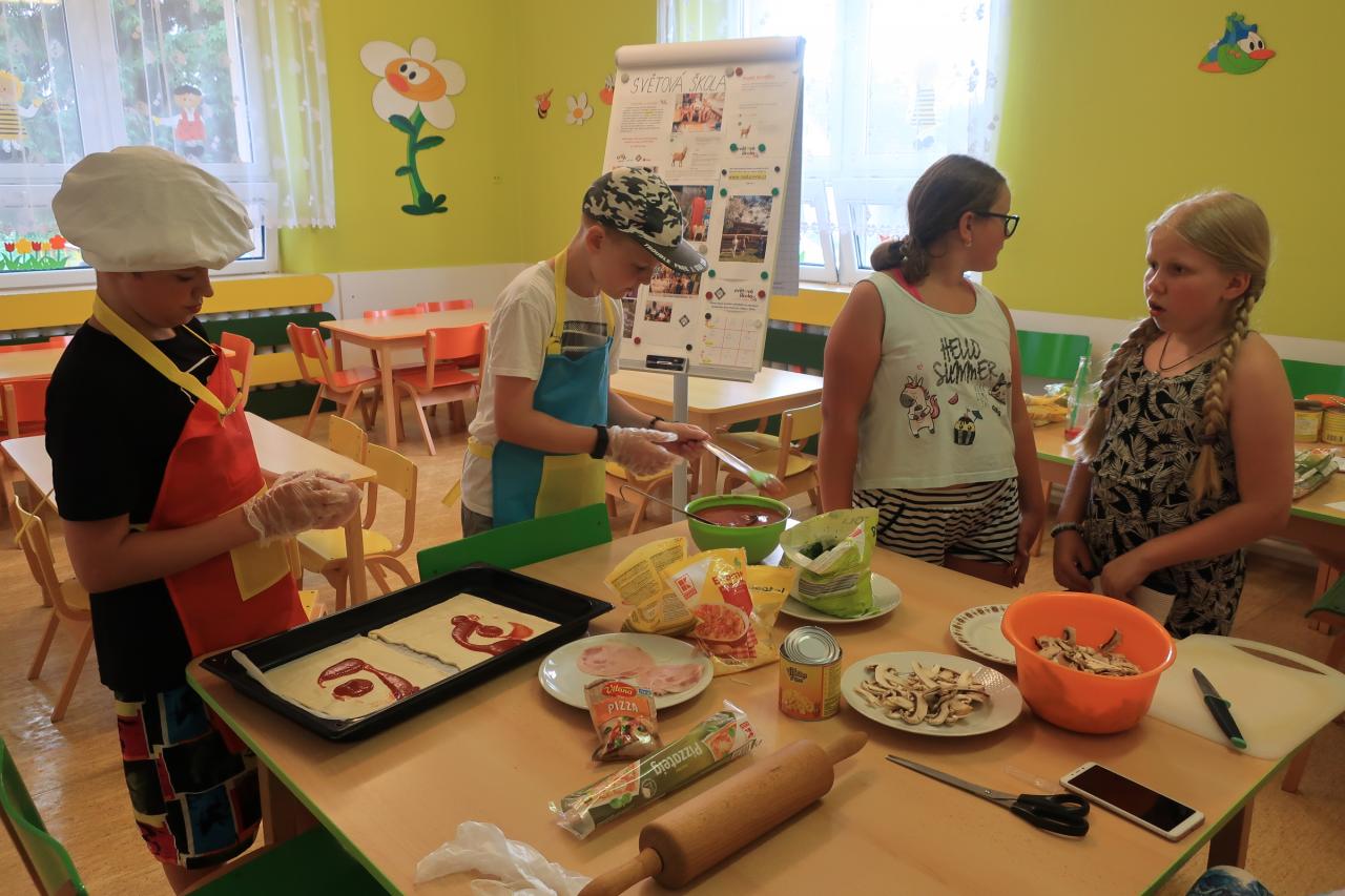 Na základě našich zkušeností s projekty Adopce na dálku a Statek u Lízy a jejích kamarádů, dále po sledování filmů JSnŠ a Člověk v tísni, jsme debatovali o tématu, zjišťovali nové informací ze světa a srovnávali je s našimi životními podmínkami. Hlouběji jsme se tak seznámili se zvoleným tématem CHUDOBA A NEROVNOST. Svá zjištění a plán vlastního projektu „Veselá koza“ jsme zaznamenali do myšlenkové mapy a prezentovali učitelům a mladším spolužákům. V průběhu roku jsme se v rámci školní družiny a chovatelského kroužku starali o zachráněnou kozu Lízu a její další kamarády (zakrslou kozu, kočky, želvu, morčata a králíky) na školním statečku. Uvědomili jsme si, že není zcela jednoduché - ale potřebné zajistit zvířatům každodenní stravu a péči. Od počátku nás zaujal „Skutečný dárek – Veselá koza“ (od Člověk v tísni). Proto při dvou veřejných akcích školy jsme prodávali vlastní výrobky: 1) perníčky zvířátek ze statku - připravené z vlastních vykrajovátek (dle našich návrhů - 3D tisk), 2) pizzy v originálních krabičkách vlastní výroby. Utržili jsme 1800,-Kč na zakoupení 2ks „Veselých koz“ pro rodinu z chudých oblastí světa. S vybraným globálním problémem jsme při akcích seznamovali účastníky ústně a prostřednictvím flipchartové nástěnky „Světová škola“. Většinu lidí problém zaujal, nadchl je i náš postoj a jednání. Hodně lidí se finančním příspěvkem připojilo k našemu žákovskému projektu „Veselá koza“ a rozhodlo se problém chudoby společně s námi řešit.